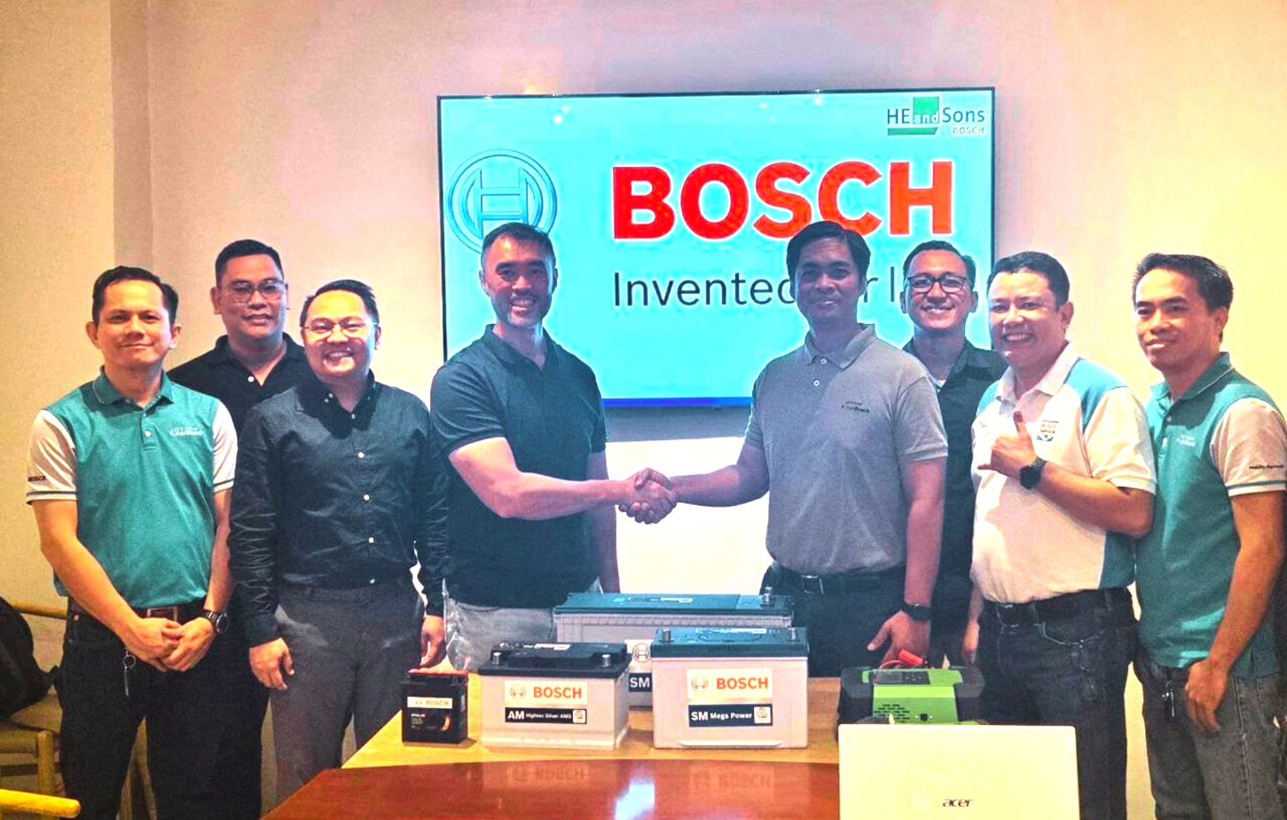 The partnership signing ceremony was attended by Bosch representatives Grace Mok, Head of Bosch Battery Powerhouse (ASEAN); Yudj Astani, Battery Technical Trainer (ASEAN); and Abraham Jabola, Battery Product Manager (Philippines).