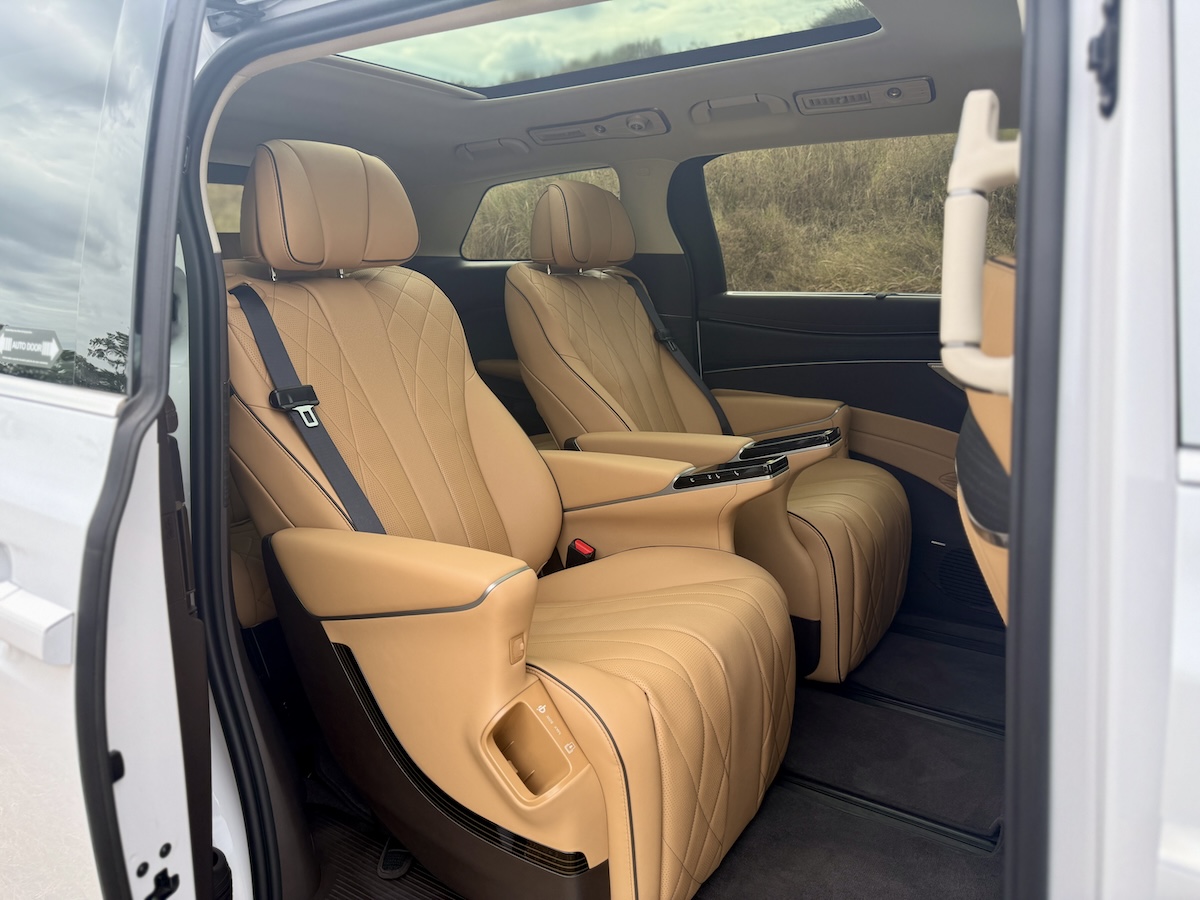 Denza has crafted the D9’s cabin to evoke a more luxurious, executive-level experience. The second-row “zero-gravity” seats feature extensive power adjustments, heating, ventilation, and massage modes – goodies that are significantly more advanced than what is standard on the eMax 9. Premium materials such as Nappa leather, ambient mood lighting, rear entertainment screens, and a high-end 14-speaker audio system all contribute to an environment akin to a luxury lounge than a family van.