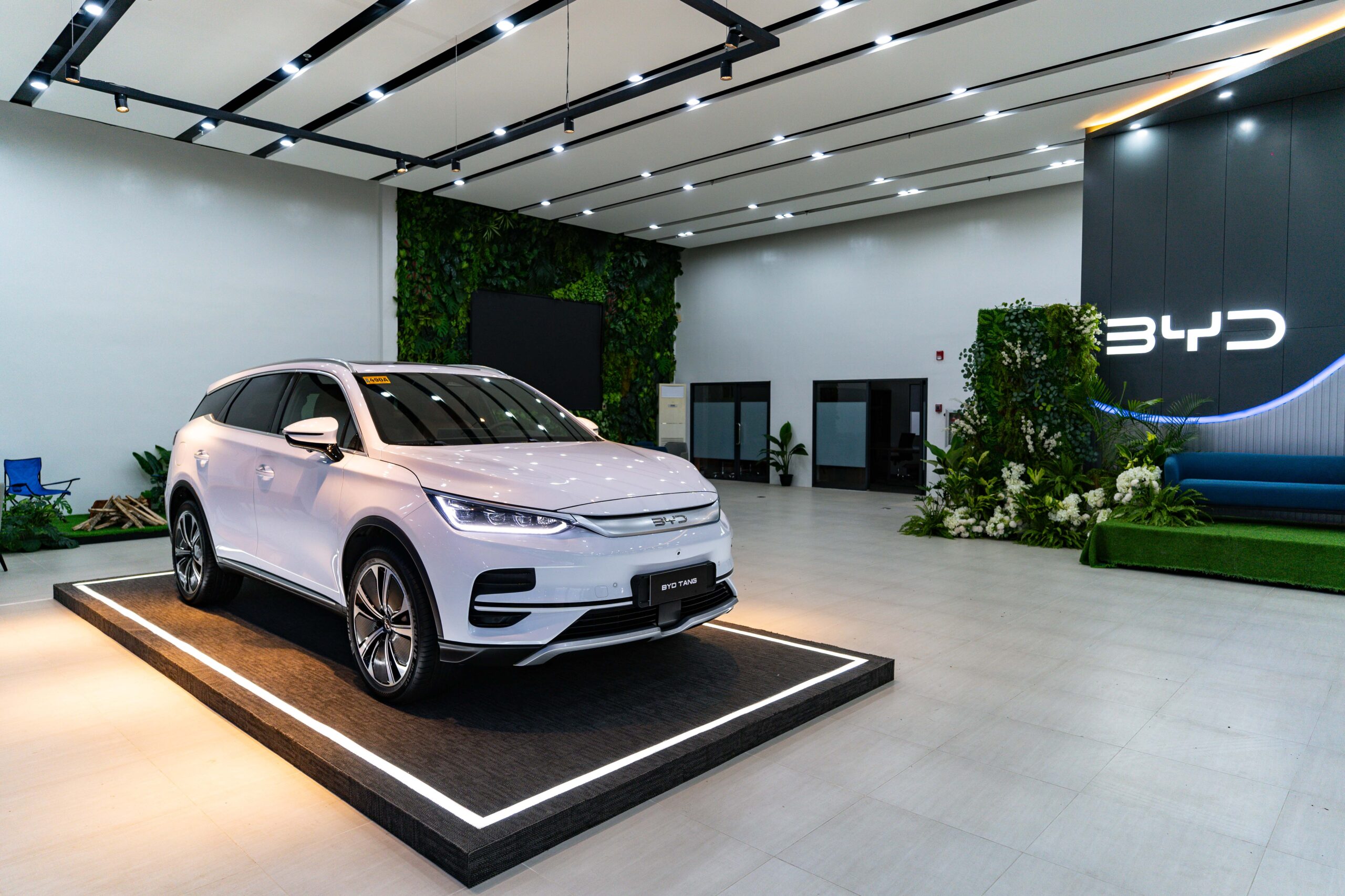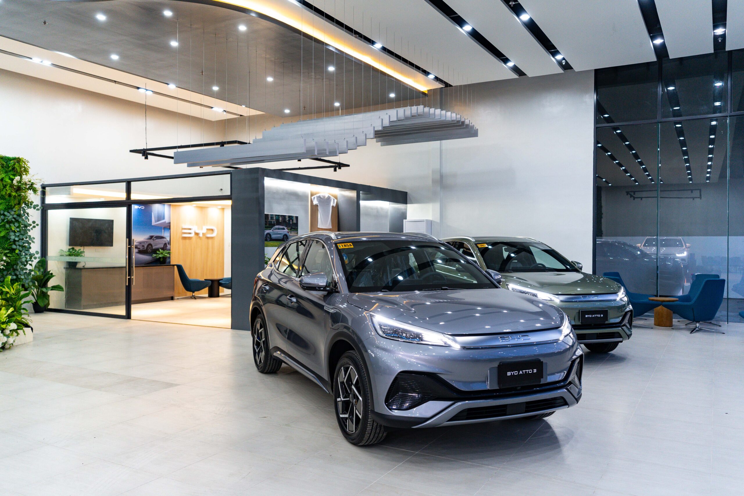 Inside, the facility boasts a modern six-car showroom showcasing BYD’s latest models, including the BYD Tang seven-seater electric SUV, the BYD Han electric sports sedan, the BYD Atto 3 electric subcompact crossover, and the BYD Dolphin urban hatchback. Each model represents cutting-edge advancements in electric vehicle technology and design.