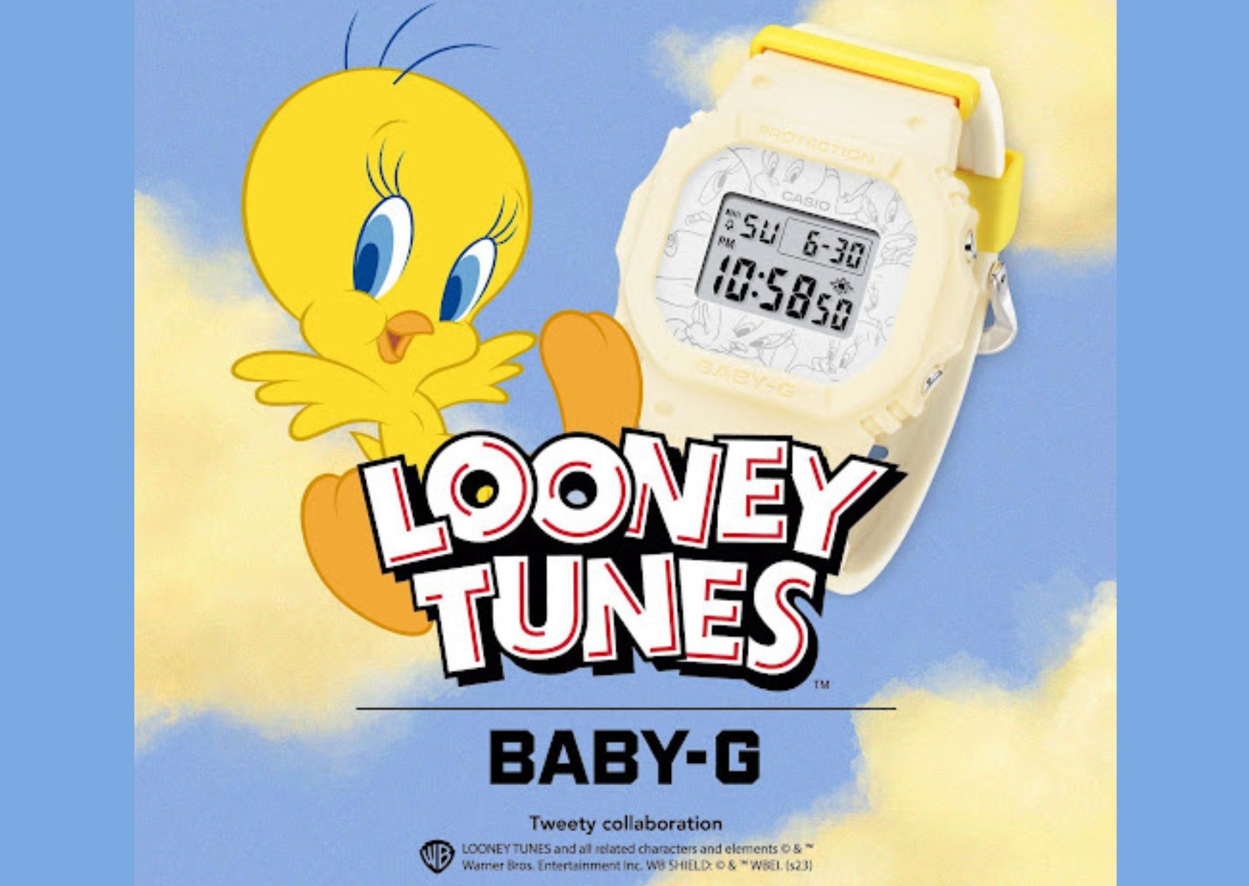 CASIO also partnered with Warner Bros. Discovery Global Consumer Products for the BABY-G x LOONEY TUNES collaboration. The watch face features a collage of Tweety’s many adorable expressions, and when the LED backlight is activated, his silhouette appears on the LCD. The back case is engraved with Tweety in his most iconic pose. This special edition watch also comes in an exclusive packaging. The PHP 8,510 watch also has a “TWEETY” logo printed on the band.