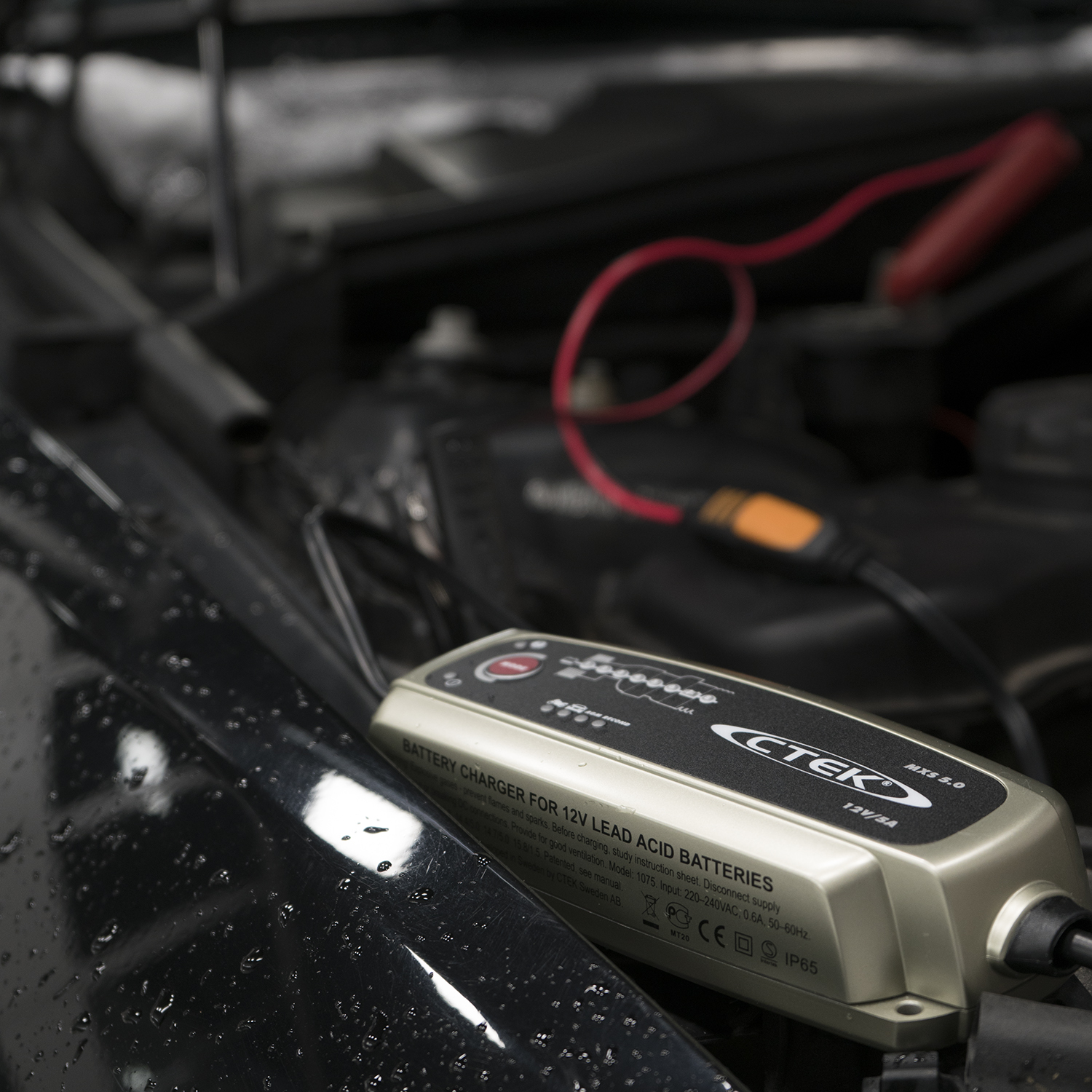 The MXS 5.0 uses CTEK’s patented float/pulse system, which makes it safe when connected for long periods of time. It is also splash and dust-proof, with an IP65 rating, guarantees spark- free operation, and is short-circuit proof.