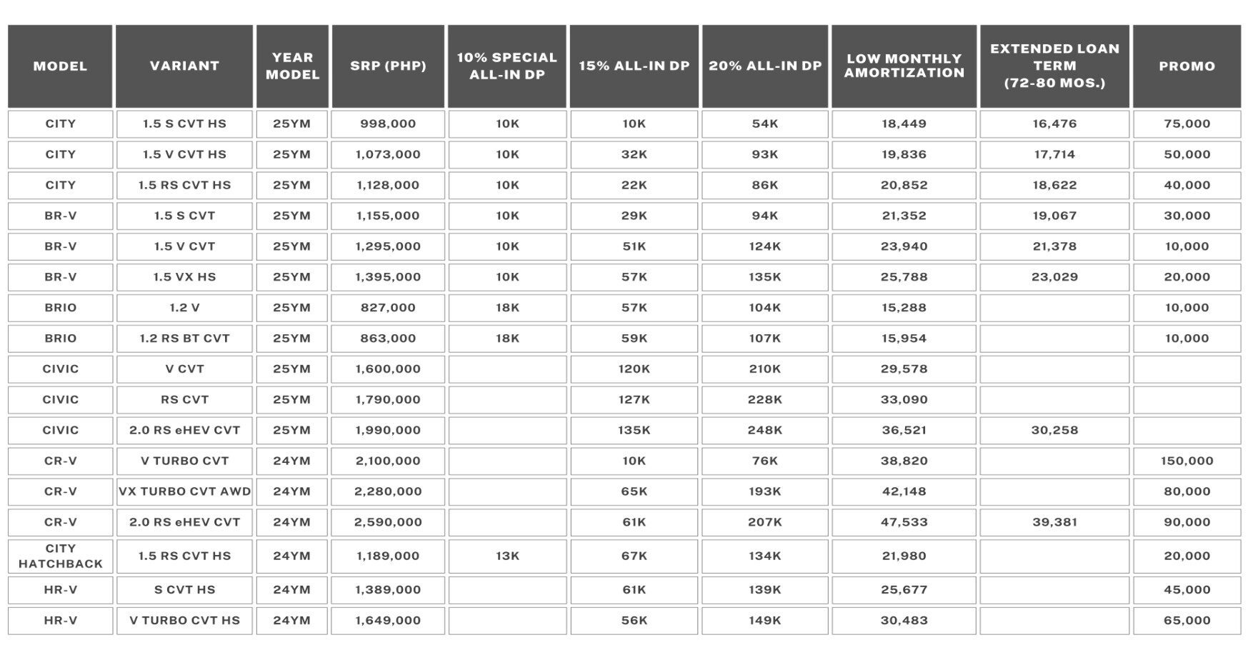 Honda Cars Philippines, Inc. (HCPI) is spreading the holiday cheer with exclusive offers on select models this December. With flexible financing options, such as low all-in down payments and affordable monthly amortization plans, owning your dream Honda car is more achievable than ever.