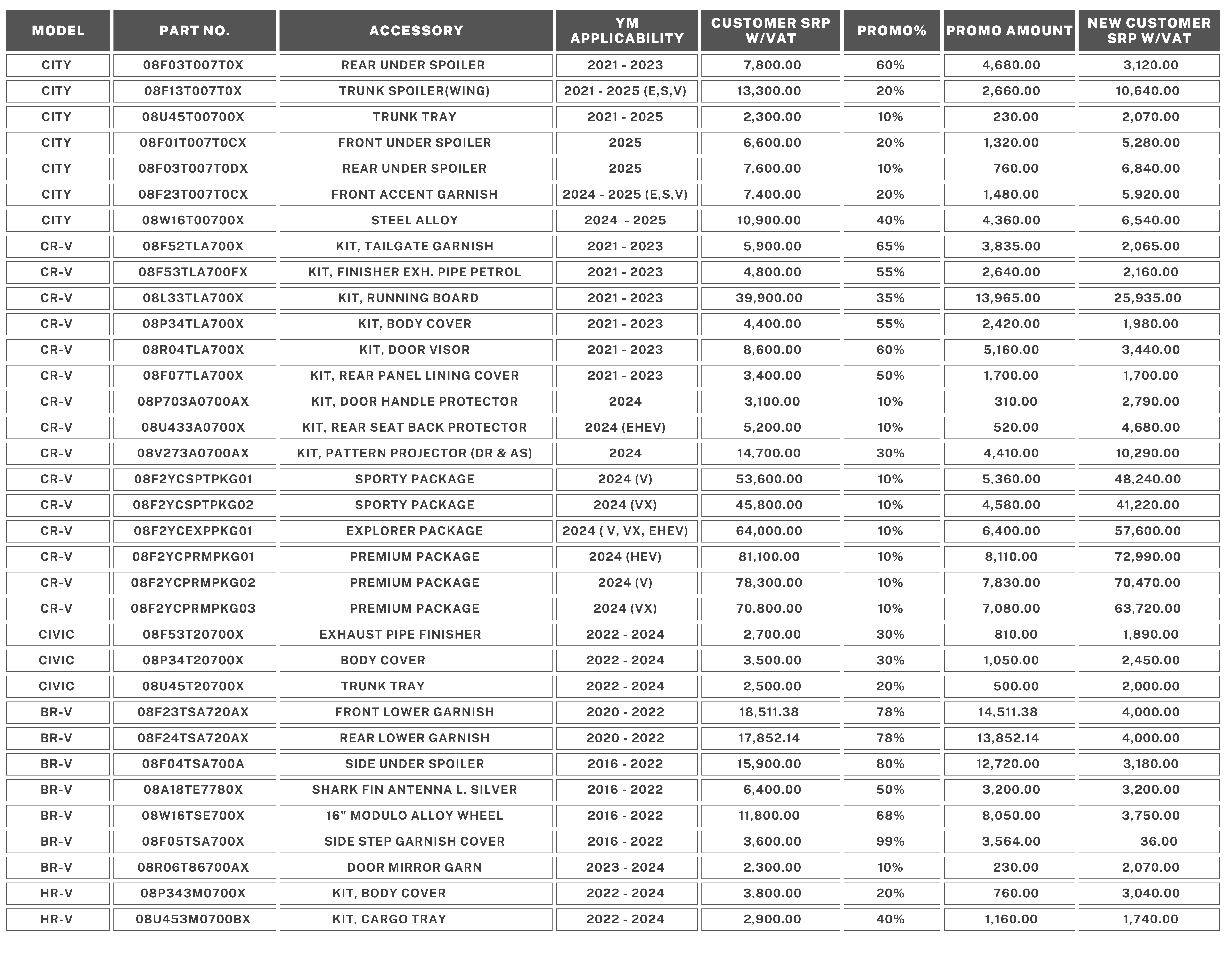 3. The Honda Genuine Accessory discount is only applicable for item purchases. Painting and installation costs are at the customer’s expense. Painting and installation costs may vary per dealership.