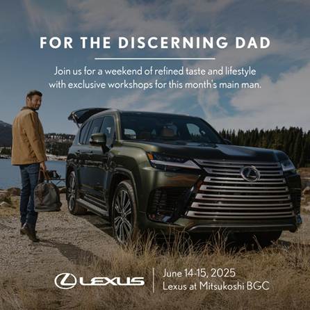 This Father’s Day weekend, Lexus invites guests to Mitsukoshi BGC for a curated celebration of timeless style and considered taste. Happening on June 14 to 15, the experience honors the presence of fathers through thoughtful encounters that reflect Lexus values—elegance, attention to detail, and a deep appreciation for craft.