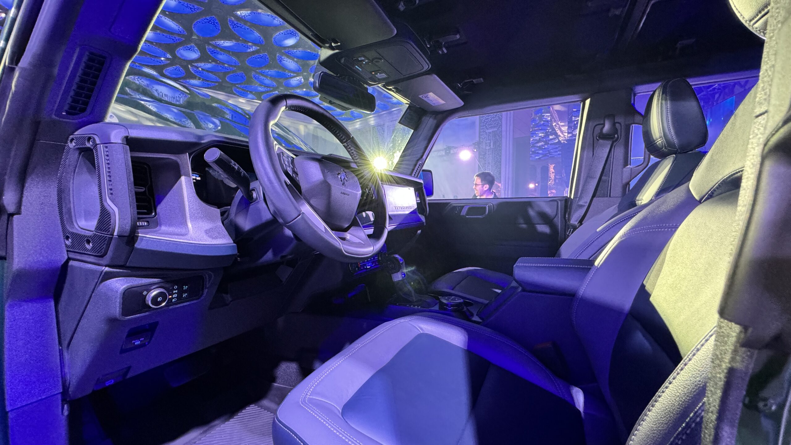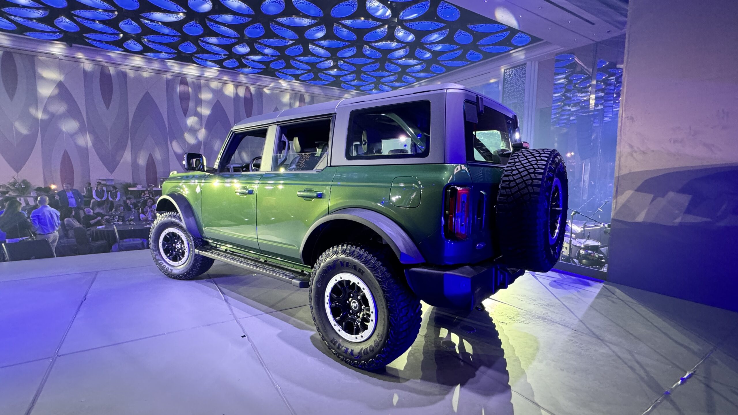 Inside, the Bronco features leather-trimmed seats in dark space gray and navy pier colors, with a 10-way power-adjustable driver’s seat and an 8-way power-adjustable front passenger seat. The SUV comes with a Carbonized Gray Molded-in-Color Hard Top with a sound-deadening headliner, and offers an open-air experience with its removable roof and doors.
