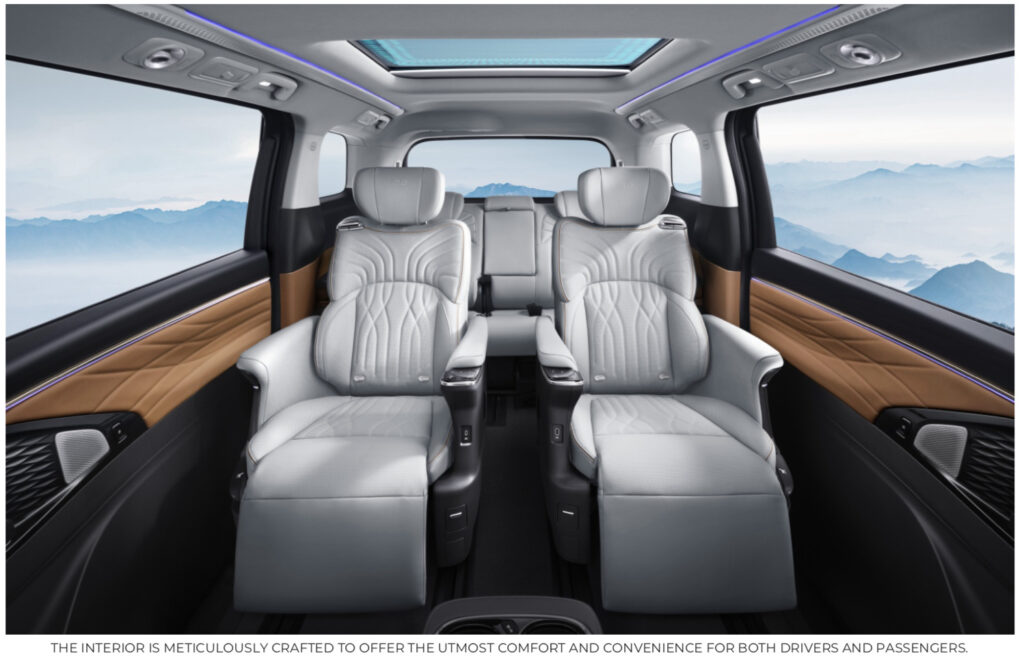 The interior is meticulously crafted to offer the utmost comfort and convenience for both drivers and passengers alike, with a 2-2-3 seating configuration across its spacious cabin.
