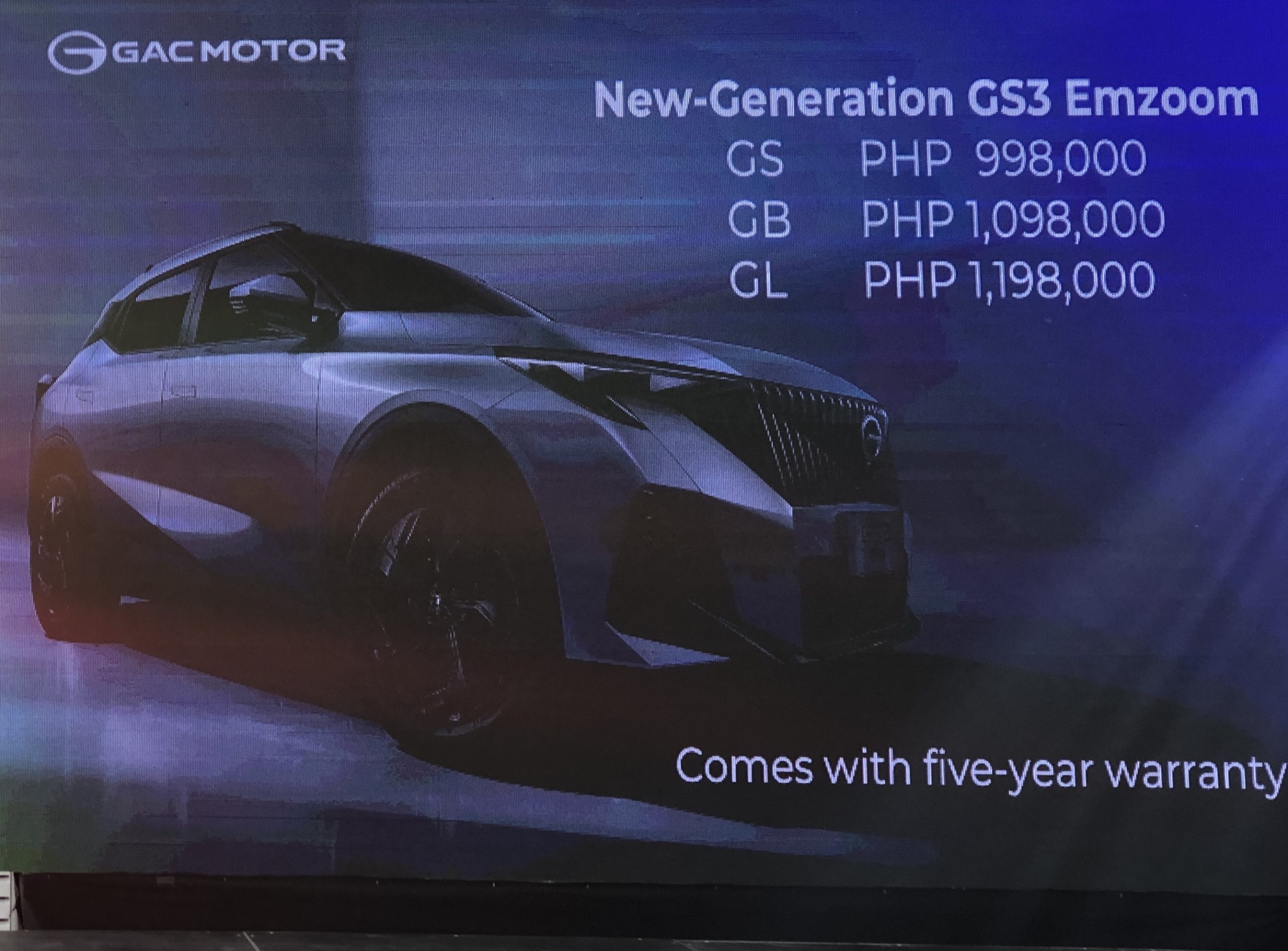 “We are excited to give you a glimpse of the New-Generation GS3 EMZOOM, the newest challenger in the scene, set to drive our brand to new heights and zoom through Philippine roads with its fierce and sporty character. We are also proud to announce that the Philippines is the first overseas market to launch the GS3 EMZOOM,” said Cajayon.