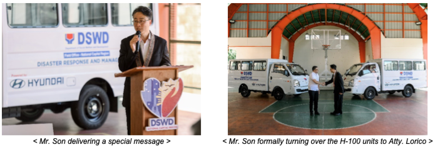 “Last year, we donated two H-100 units to support DSWD’s disaster response and management and outreach operations. And today, we continue to show our support through the additional units we will be handing over. This donation not only fortifies our partnership, but especially Hyundai Motor’s journey towards its vision, ‘Progress for Humanity’,” said HMPH President, Mr. Jiho Son, in his special message. “We are honored to be in partnership with DSWD who continuously aims to uplift the lives of Filipinos.”
