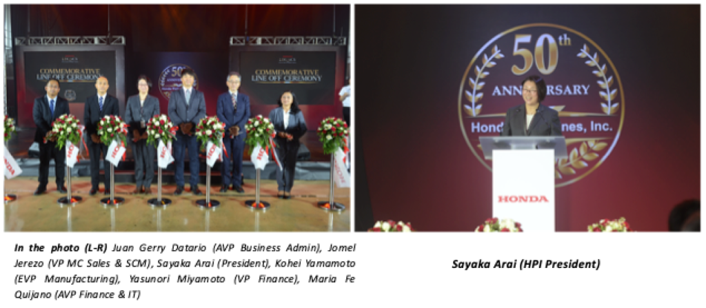 “HPI has reached these milestones with the help of everyone involved in the company and, more importantly, with the unwavering support of the Filipino public. It is an honor for us to provide Filipinos with mobility, comfort, and even more job opportunities through our motorcycles. Rest assured that we will aim to continue improving our customers’ daily lives by enabling them to experience Honda’s innovations found in our every product and service that exceed their expectations,” added Arai san.