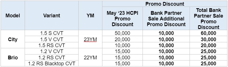 Customers who will be purchasing any variants of 23YM City and 22YM Brio CVT variants are entitled to additional exclusive financing savings on top of ongoing HCPI promotion, available with any of Honda’s bank partners.