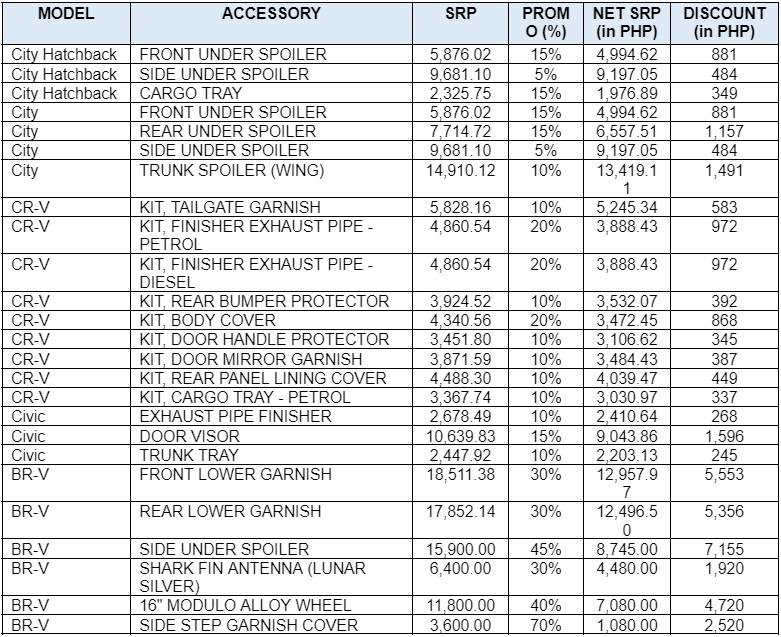 Customers may avail up to 70% off on select Honda Genuine Accessories until May 31, 2023.