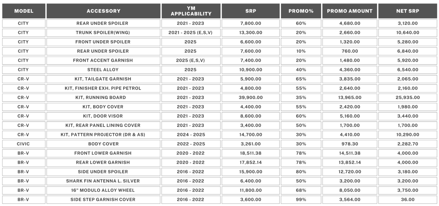 Honda customers can enjoy savings of up to PHP 14,500 this month on select genuine accessories. This limited-time offer is the perfect opportunity to enhance the style and functionality of their vehicles with authentic Honda parts.