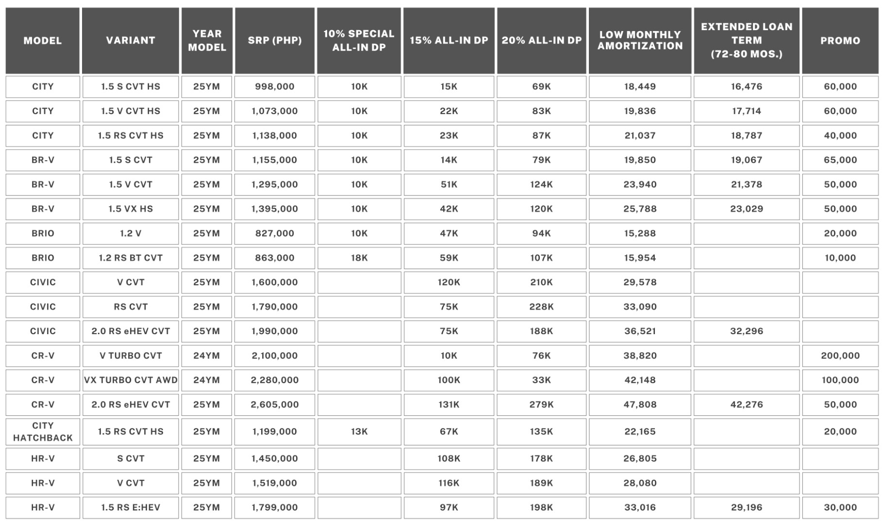 - Special 10% all-in downpayment packages for BPI, RCBC, and Bank of Commerce