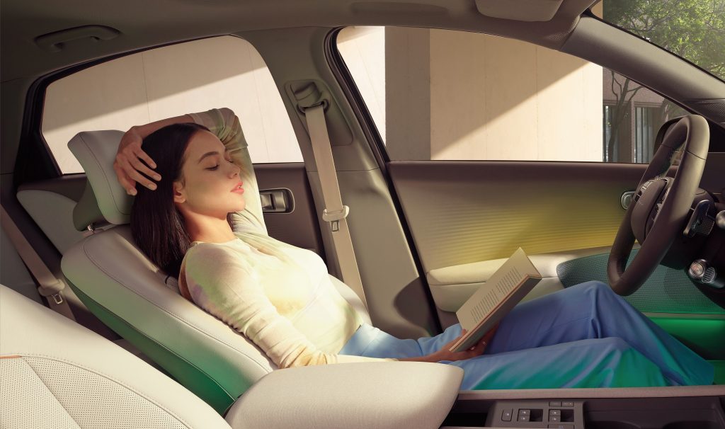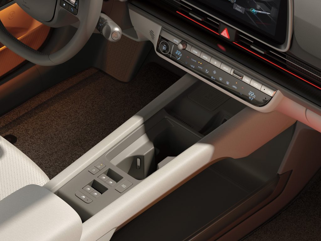 The IONIQ 6 has a winglet-shaped dashboard and a bridge-shaped center console for a more comfortable and versatile in-car experience. Since it is built on the brand’s dedicated E-GMP (Electric-Global Modular Platform), it was designed not just on safety but also for space efficiency. The floor structure was made flat so the interior can be maximized especially on the second-row seats. It also features specialized storages such as the sliding glove box, wide pocket rooms at the button-less slim doors and an open-style tray in between the front seats.