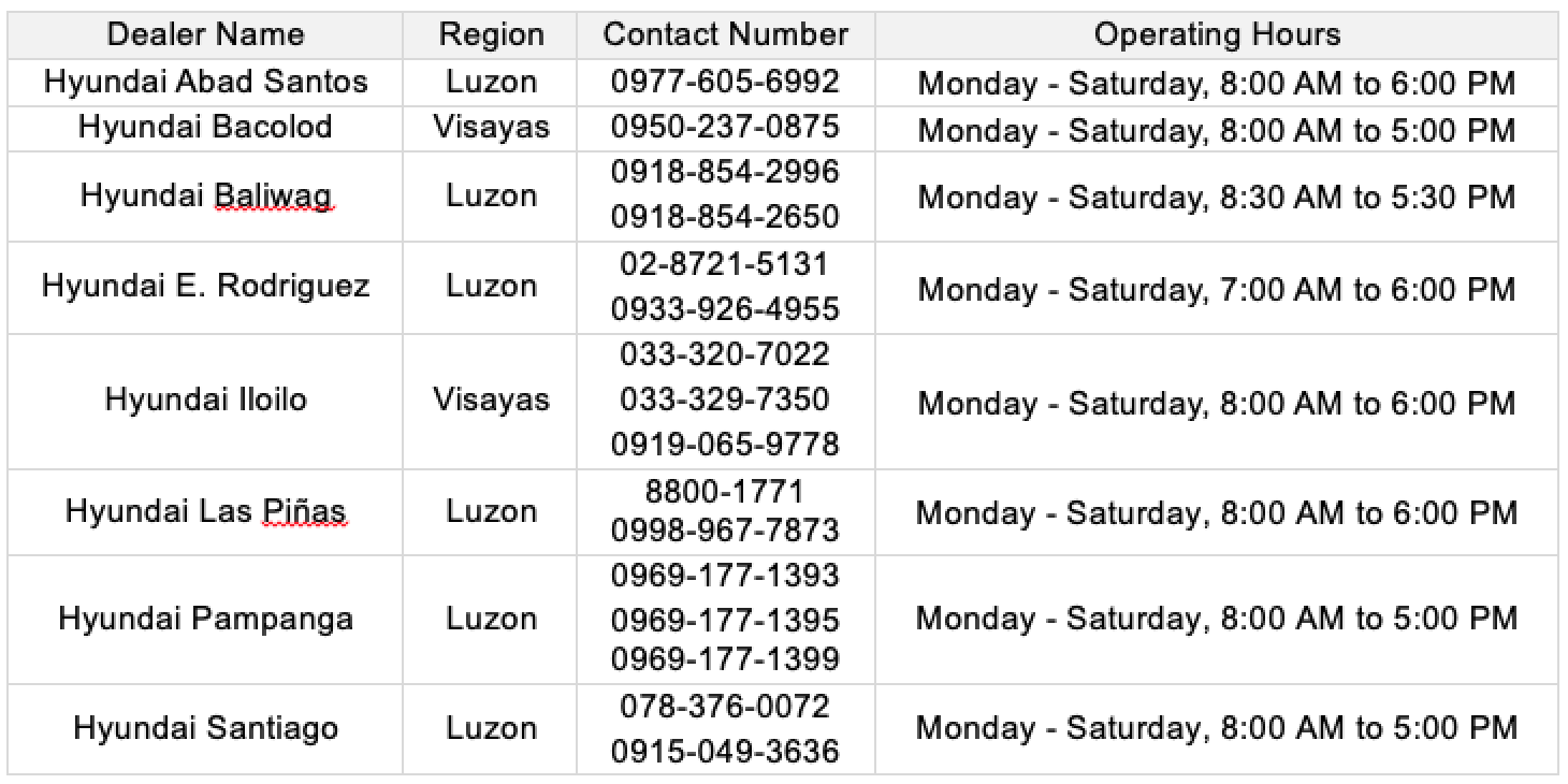 The service will be applicable to all Hyundai models regardless of variant or production year. There will be four (4) more joining the roster of dealers, namely, Hyundai Cagayan De Oro, Hyundai Calamba, Hyundai Commonwealth and Hyundai Southern Mindanao.