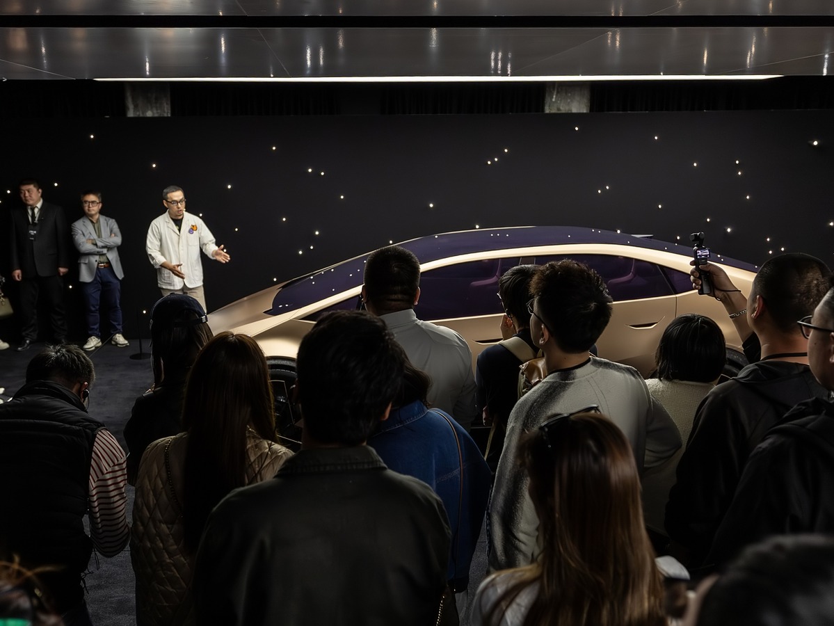 Onto the Earth, this family SUV is finished in a color called “Aurora Shield.” While the Venus is sleek, the Earth is robust, featuring exposed bolt accents and skid plates. The interior is designed to be a “small Earth,” with “air-hug” seats and “shy-tech” elements that hide away when not in use. It also incorporates hidden map patterns of Beijing into its design, a nod to the SUV’s grounded character, contrasting Venus’s sleek sophistication.