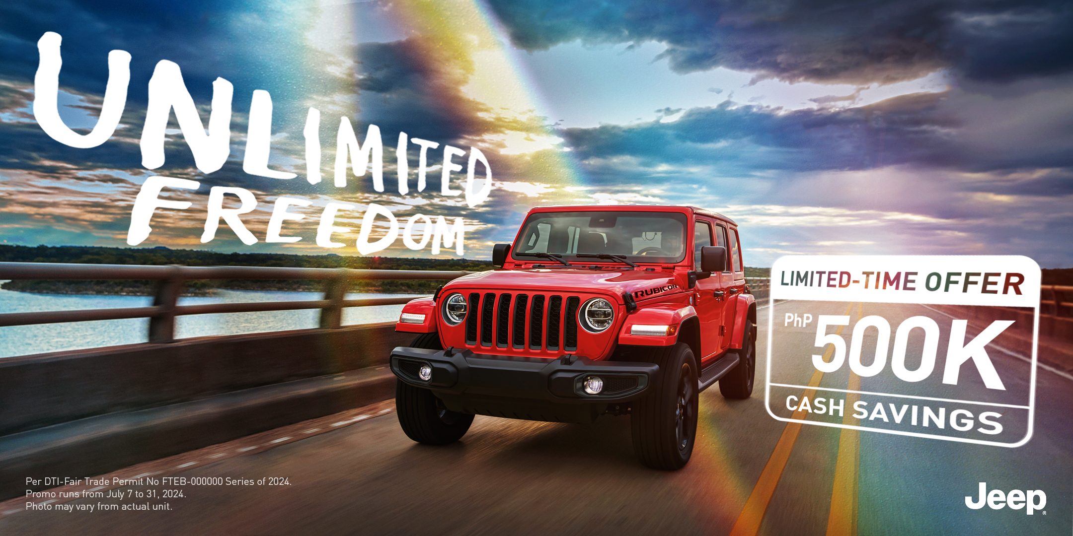“The Wrangler Unlimited Rubicon embodies the essence of freedom and adventure,” said Ms. Valerie Yu-Leong, AVP for Sales and Marketing at Jeep Philippines. “This exceptional discount is our way of celebrating the Jeep legacy and making the dream of owning a Wrangler Unlimited Rubicon a reality for more Filipinos. Don’t miss this chance to be part of the Jeep family.”