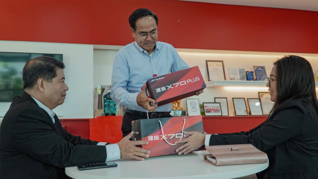 In the photo: Atty. Rommel Guiterrez – President, Chamber of Automotive Manufacturers of the Philippines Inc (CAMPI), Miguelito Jose – Managing Director, JETOUR Auto Philippines, Cameron Arciaga, Marketing Officer – JETOUR Auto Philippines
