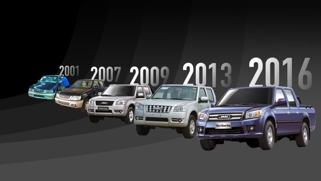 The brand’s distinguished line of pickups unfolds a story of engineering finesse, evolution, and innovation. In 2001, JMC launched its first pickup vehicle with independent intellectual property rights, the JMC “Boarding”. Driven by an adaptation of a rich R&D background, the pickup truck rivaled the quality of imported vehicles at the time, becoming a marvel of Chinese craftsmanship and quality. Fuel-efficient and comfortable, it continues to receive upgrades and innovations, becoming a top-selling model in China for several years.