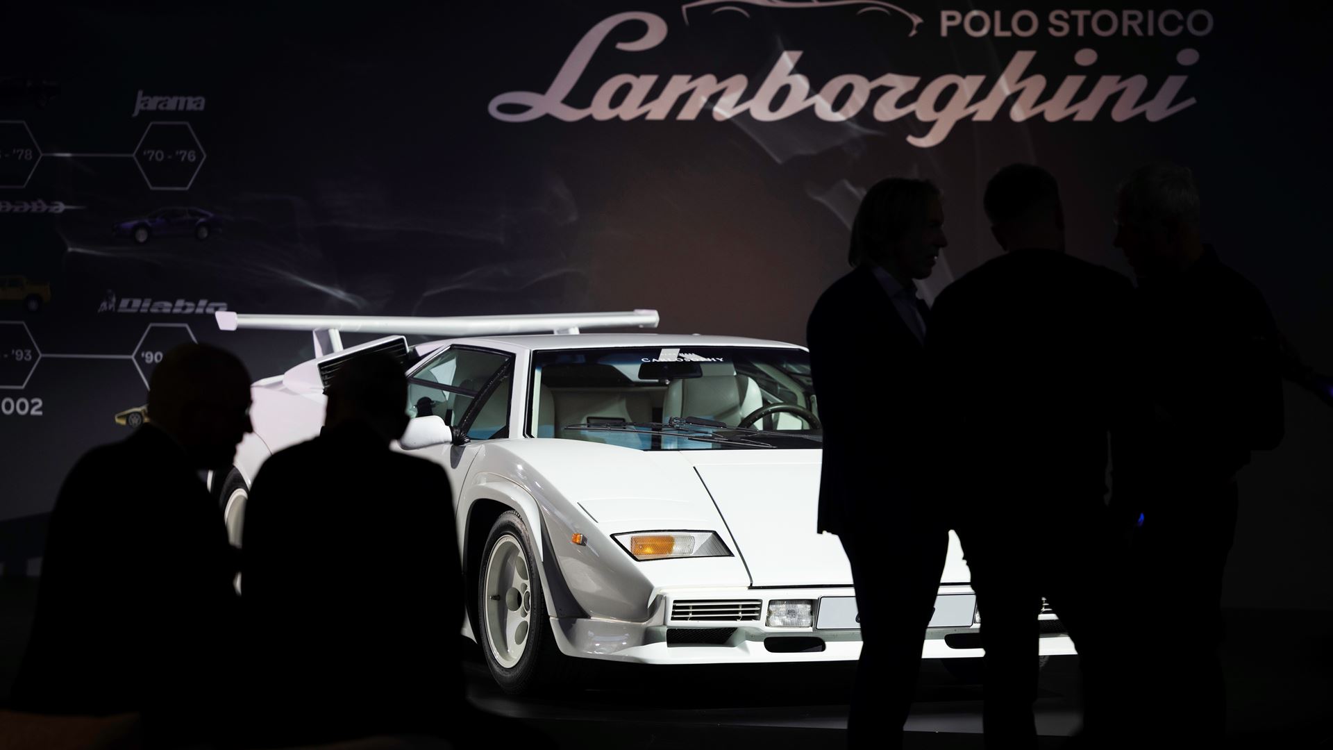 - Polo Storico: A display of heritage cars, including a Countach QV, Diablo SE 30, and Miura S.