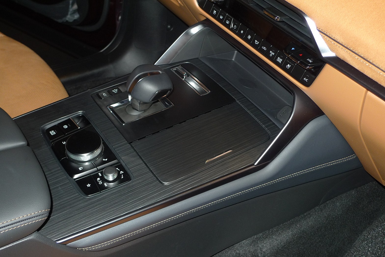 The CX-90’s dignified design continues into the cabin with an interior that gives an expansive impression from the dashboard through the positioning of the vents and metallic accents, extending to the doors for a modern, linear appearance. Inspired by traditional Japanese aesthetics, a luxurious and comfortable feel is experienced in all three rows. From the front seats to the available second row ventilated captain’s chairs, and into the third row, which is bestowed with its own ventilation louvres, there are multiple materials, such as supple Nappa leather and Leganu suede inserts.