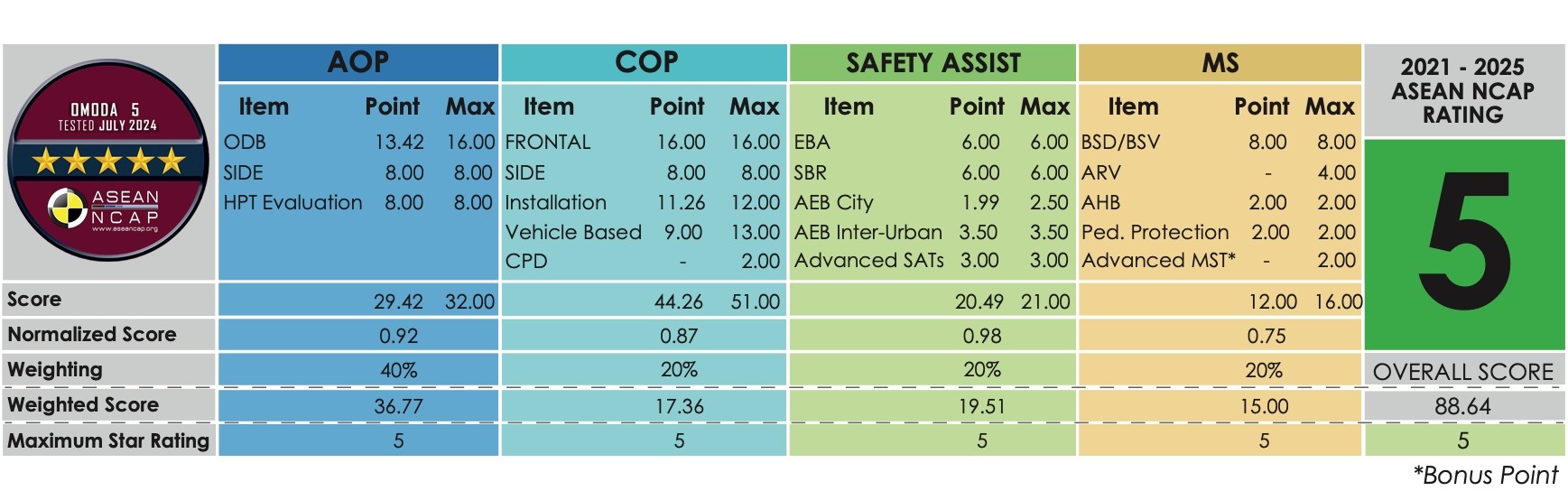 The ASEAN NCAP has officially released its latest safety test results, and the OMODA C5 has emerged as a standout performer. This global model from the Chinese carmaker not only secured a five-star safety rating but also achieved the highest score in its class, earning a total of 88.64 points. This achievement reaffirms OMODA’s unwavering commitment to safety and quality in its vehicles.