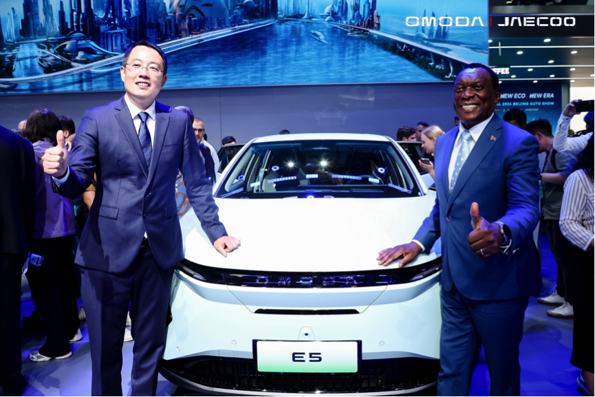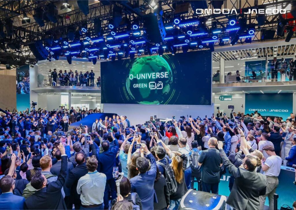 On April 25, 2024, the Beijing International Automotive Exhibition officially commenced. The emerging personalized brand OMODA & JAECOO, with their new energy vehicle family, made an appearance. Among them, the first pure electric model, OMODA E5, emerged as the star of the day, with international politicians taking the stage to be photographed with this E-Future Ranger and supporting the launch of the O-UNIVERSE “GREEN OJ” ecological platform. The largest Dream Team of International Guests in the history of the Beijing International Automotive Exhibition took the stage, instantly turning the OMODA & JAECOO booth into a “small United Nations” and marking a rare moment of honor in the automotive circle.