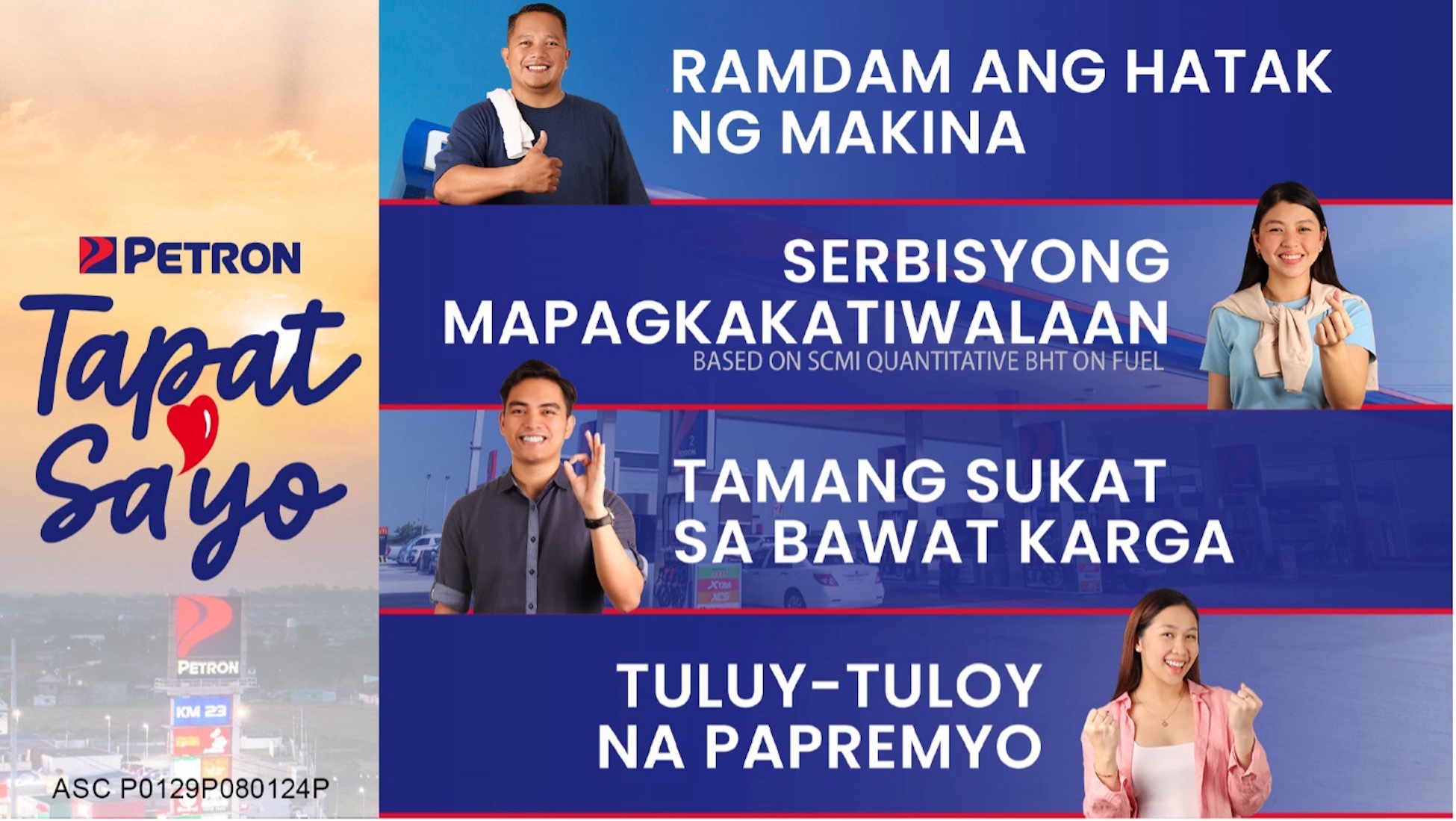 Lemuel Cuezon, Petron’s Marketing Vice President, explained, “We have always believed that the Filipino people deserve only the best for their motoring needs. With ‘Tapat Sa’yo,’ we reaffirm our pledge to be the most trusted name among Filipino motorists, offering better value propositions at favorable prices.”