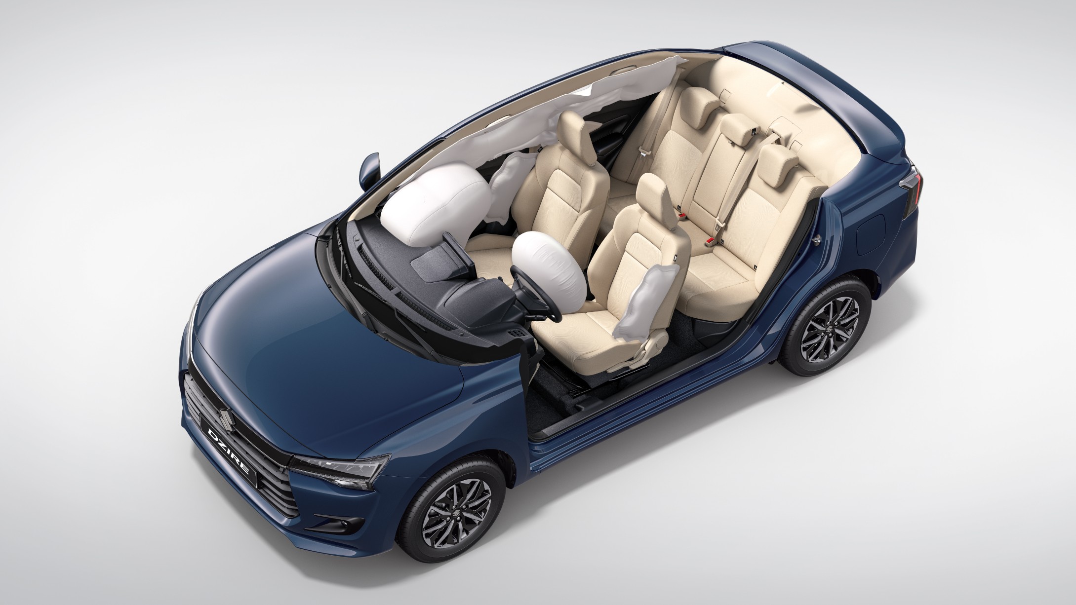 Safety remains a top priority with the All-New Dzire Hybrid, with six airbags now standard across all variants—including front, side, and curtain airbags for comprehensive occupant protection.