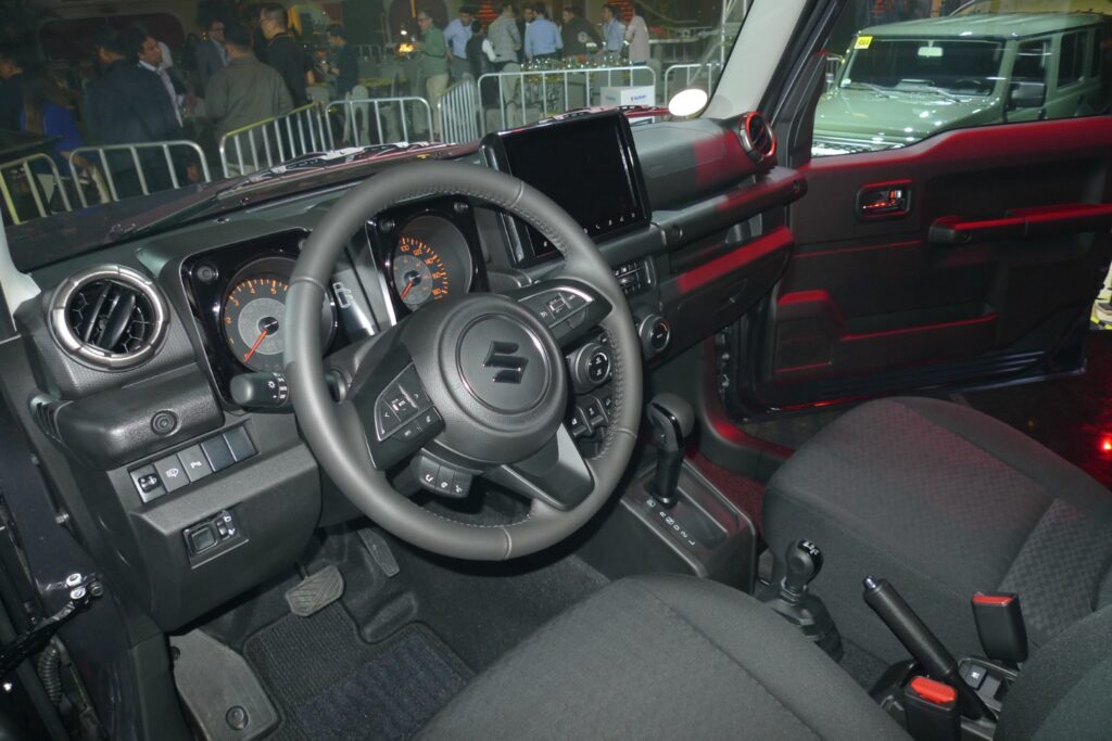 The New Jimny 5-door offers monotone color options for the GL and GLX variants, including Jungle Green, Celestial Blue Pearl Metallic, Arctic White Pearl, and Granite Gray Metallic. The GLX Two-Tone variant, on the other hand, is available in Sizzling Red Metallic – Bluish Black Pearl and Chiffon Ivory Metallic – Bluish Black Pearl.