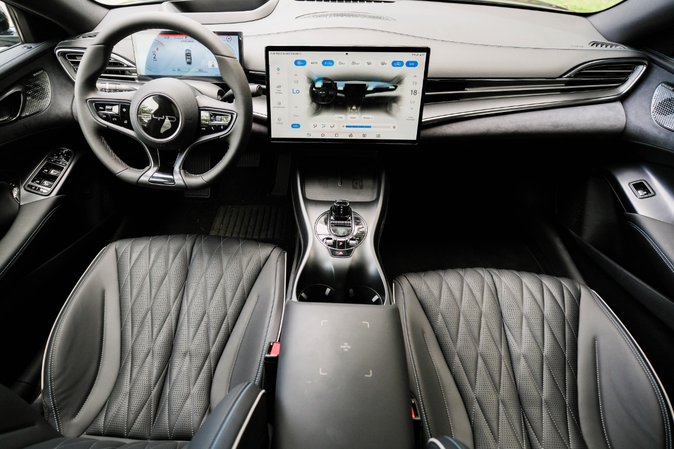 The latest BYD flagship performance sedan is equipped with Frequency Selective Damping shock absorbers that enhance ride quality and stability by adjusting damping characteristics based on road conditions and driving requirements. The dampers enhance the vehicle’s composure on smooth surfaces and performance applications while providing riding comfort on uneven roads. A double-wishbone front and a five-link rear suspension configuration ensure a smoother ride and exceptional handling during spirited runs. While large 344-mm perforated and ventilated rotor discs up front and 317-mm ventilated rotor discs at the back deliver reliable stopping power even under extreme driving conditions.