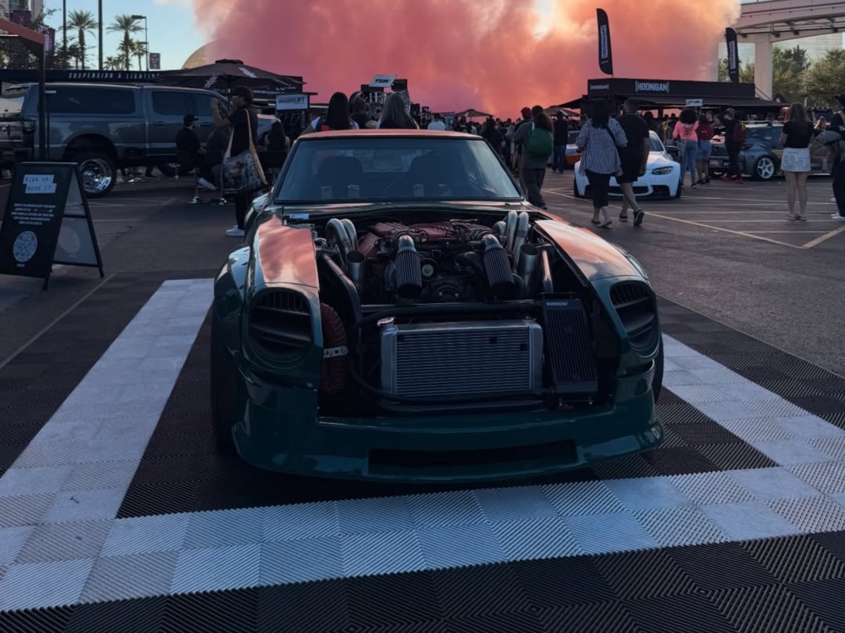 Finally, the part that ties this whole build together is the Ara green Inozetek vinyl wrap applied by Wrally Wraps, paired with the matte champagne gold Motegi wheels, a striking juxtaposition of American muscle and Japanese nostalgia, finished in an Ara Green that feels more at home on a British racer than a 70s Datsun.