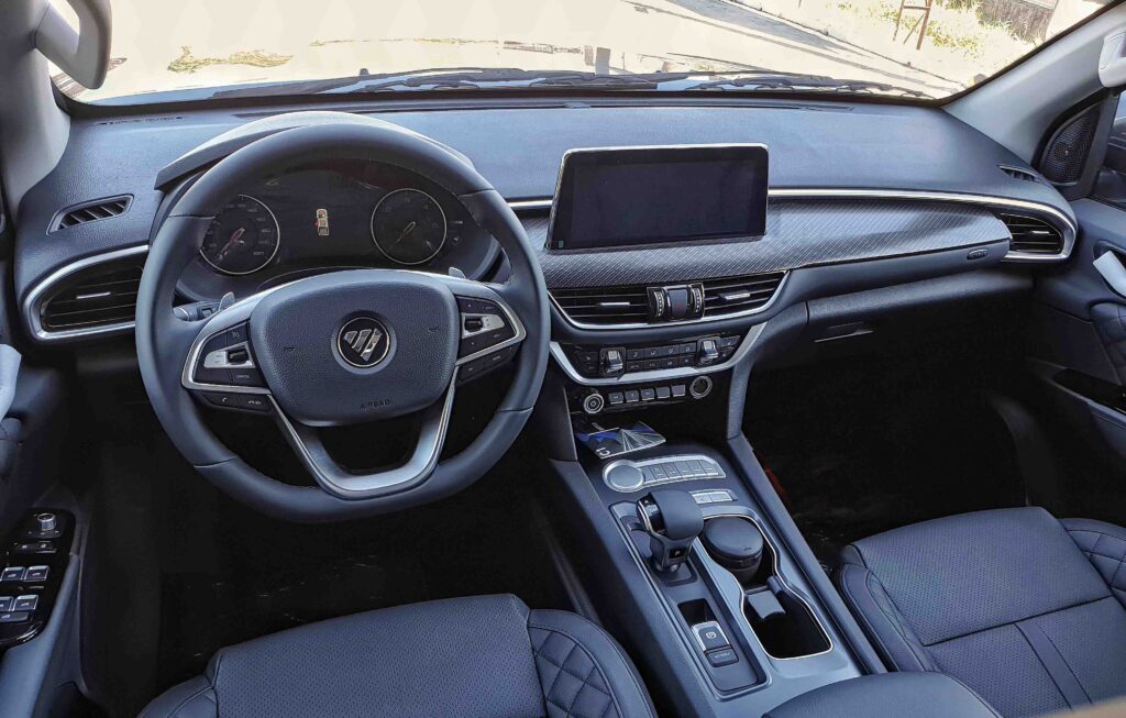 Talk about comfort and convenience, which Foton claims are an exquisite leather-finished interior; the snug front seats and rear bench have premium design patterns in European cars. Other standard features are Keyless Entry with Hold Window Down Control, Power Window Control, Central Locking System, Power Side Mirrors, Electronic Parking Brake with Auto Hold, Multi-function steering wheel, Driver Seat Height Adjustment, and Headlamp Adjustment, among others. There are cup holders everywhere, by the way.