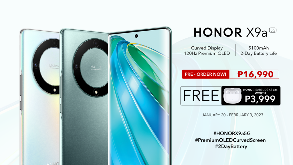 HONOR X9a 5G is priced at Php 16,990 with FREE HONOR Earbuds X3 Lite worth Php 3,999.