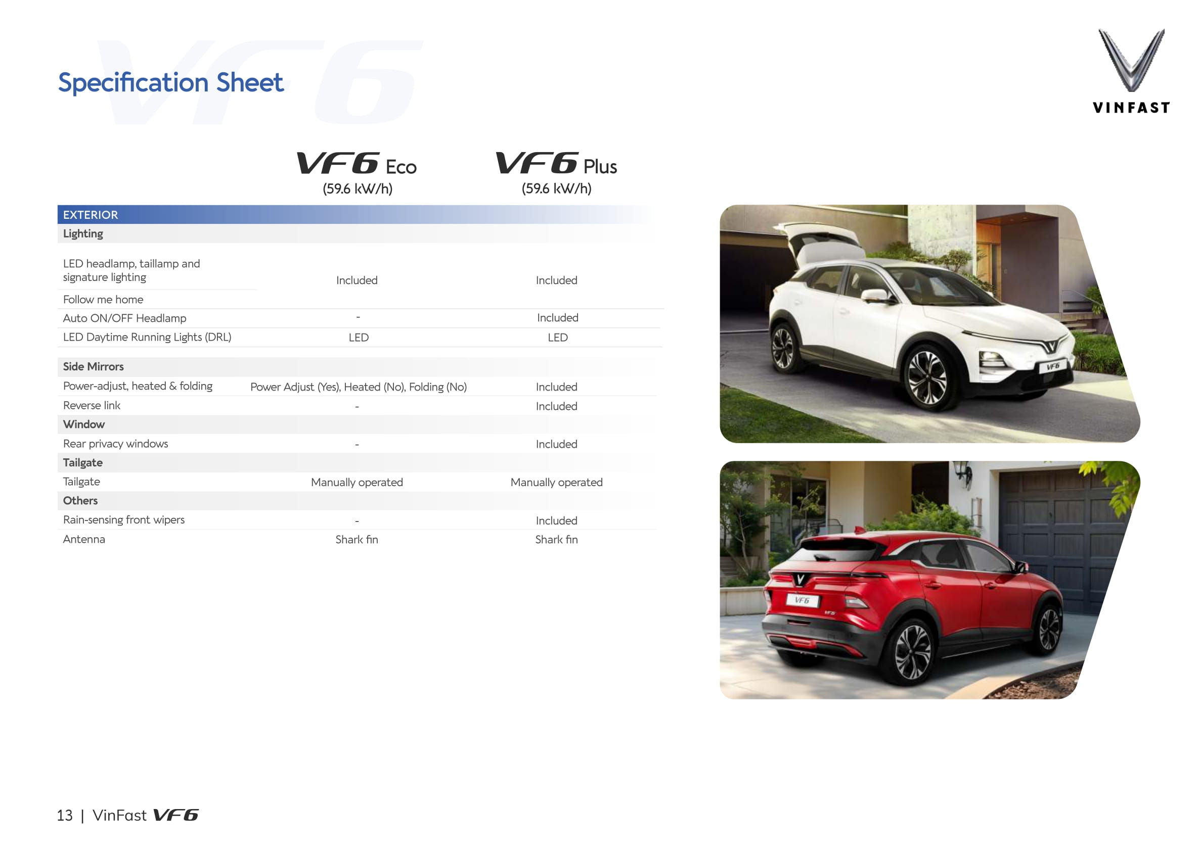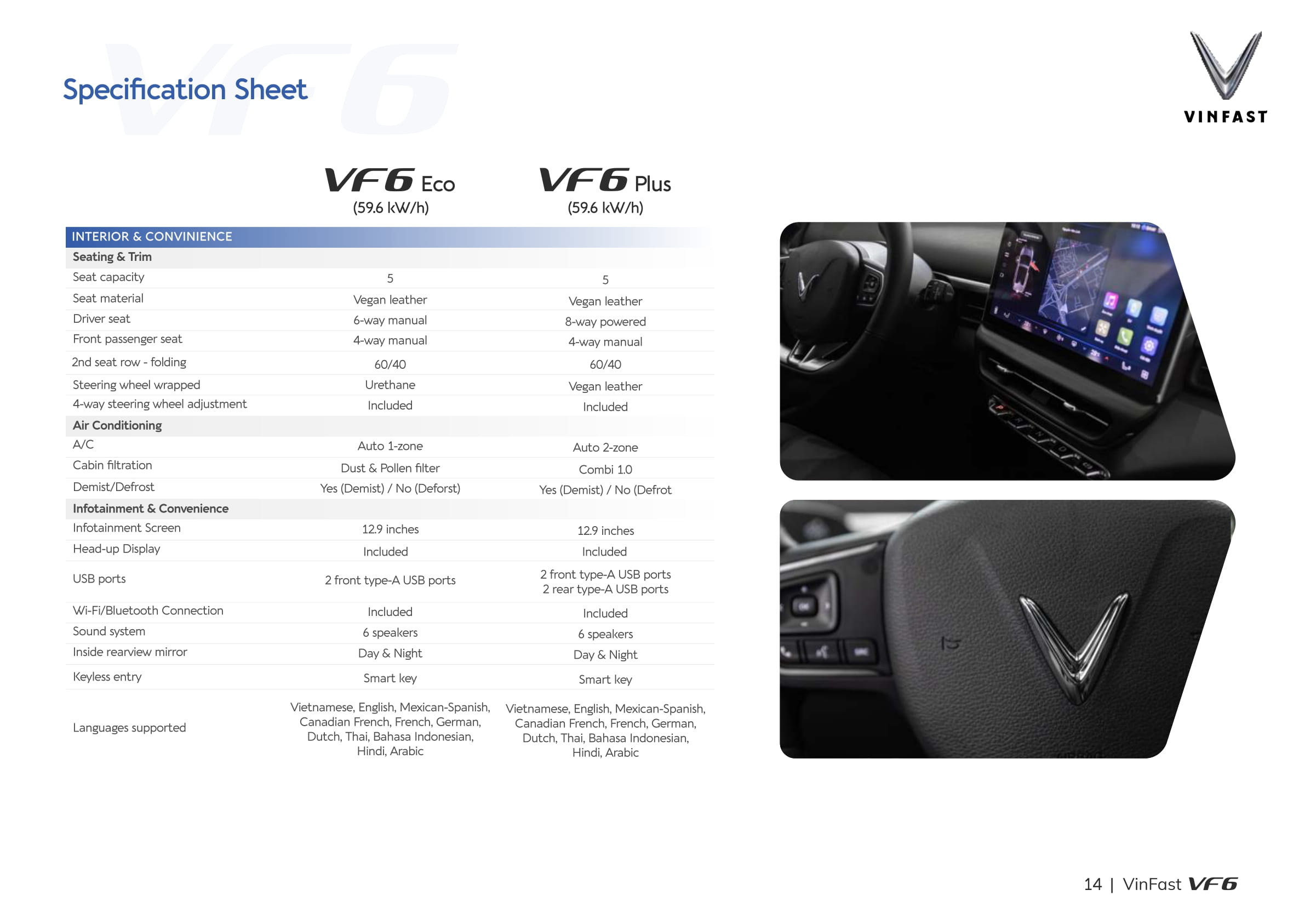 In the Philippines, the VF 6 is available in two trims: Eco and Plus, with MSRPs of PHP 1,419,000 and PHP 1,610,000, respectively. Deliveries of the VF 6 Eco variant are expected to begin in May 2025.